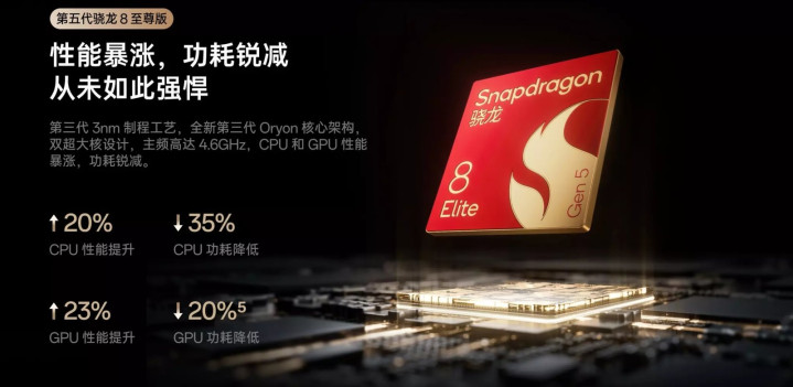 作为以性能Ultra为核心的手机,一加15有着行业顶尖的硬件配置。芯片方面,一加15搭载第五代骁龙8至尊版处理器,该处理器采用第三代Oryon核心架构,双大核设计,主频高达4.6Ghz,性能得到了进一步提升,功耗还有所降低。