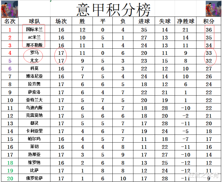 积分榜方面,意甲和英超一样,不仅榜首争夺激烈,争4同样激烈,罗马今天轻取热那亚止住颓势后,1分优势超过尤文重回前4。输球的热那亚还是在降级区边缘徘徊,只比倒数第3的维罗纳多2分。