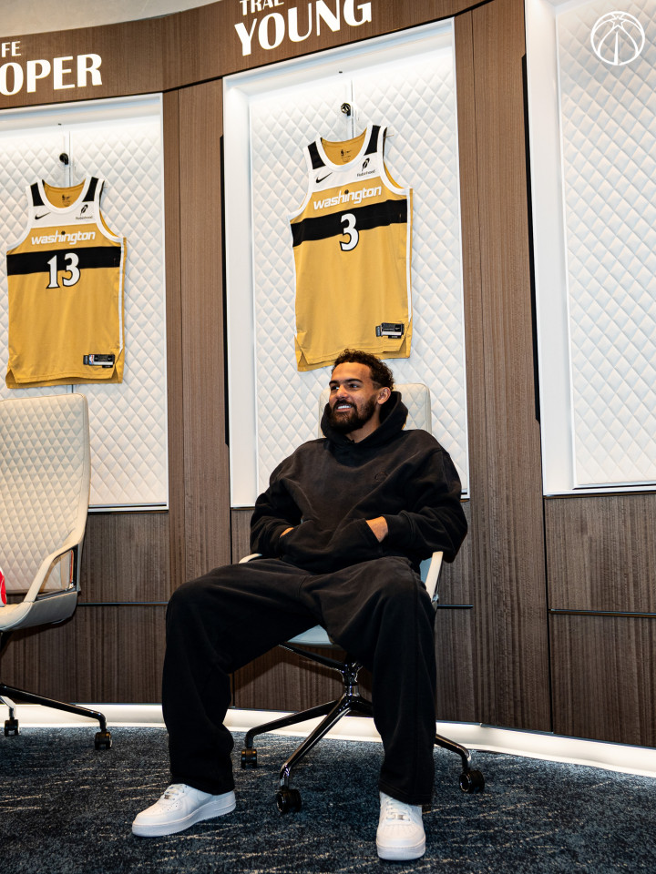 特雷-杨查看了自己的更衣柜,展示自己的3号球衣,并在坐在更衣柜前与球衣合影;之后,特雷-杨身穿奇才3号球衣拍摄定妆照,整个过程,他都十分开心;在镜头中,特雷-杨向奇才球迷问好:华盛顿的家人们,我太兴奋了,希望你们也一样。让我们开干吧。