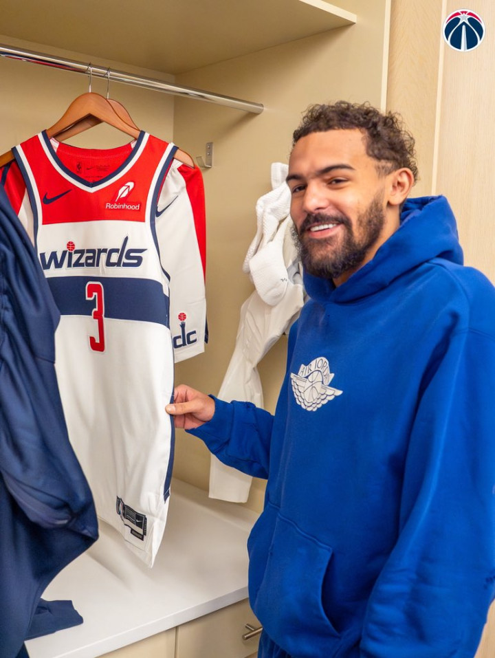 奇才正式官宣把麦科勒姆和基斯珀特交易到亚特兰大,从老鹰换来特雷-杨,奇才官方晒海报欢迎特雷-杨;特雷-杨乘坐飞机抵达华盛顿,之后坐上奇才的专属座驾抵达首都一号球馆,与奇才主帅布莱恩-基夫以及管理层会面拥抱,参观奇才球馆和新东家的更衣室。