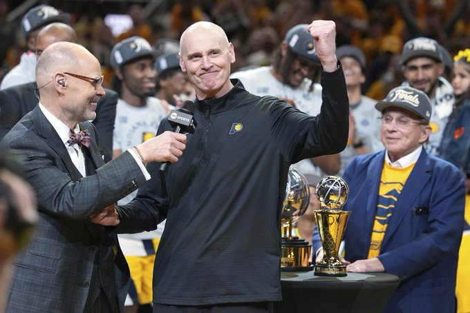 赛后,步行者全队在更衣室为卡莱尔泼水庆祝,哈利伯顿把比赛用球递给卡莱尔,全队合影留念;另外NBA总裁萧华送祝福,他表示:一千场胜利是一项非凡的成就。但更重要的是,它提醒我们,您在这一路上塑造了众多球员、教练和球队。