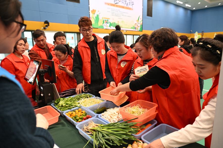 “公布今日菜价”是这次比赛的新项目,参赛者进行模拟配菜,在限定预算内为“顾客”搭配出营养均衡的菜品。这一创新设计将市集职工日常经营中最核心的“算账经”和“营销心法”搬上赛场,真正实现了“比赛即实战,技能即服务”。本届比赛在保留“一刀定乾坤”“一眼知轻重”“捆扎成方圆”等经典项目的基础上,全面升级为“单兵四项全能+团队场景配菜”模式,突出知识储备与实战服务能力。个人赛新增“市集百事通”知识竞答,将脑力与手力并列考核。