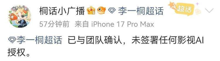 同日,李一桐、王楚然、于和伟等多名艺人方透露,未签署任何AI授权。